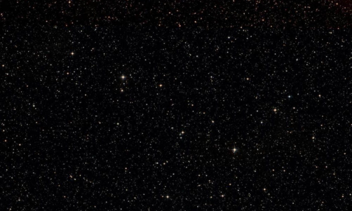 R/B-band color composite image from the Second Digitized Sky Survey (DSS2), measuring 80 arcminutes across.