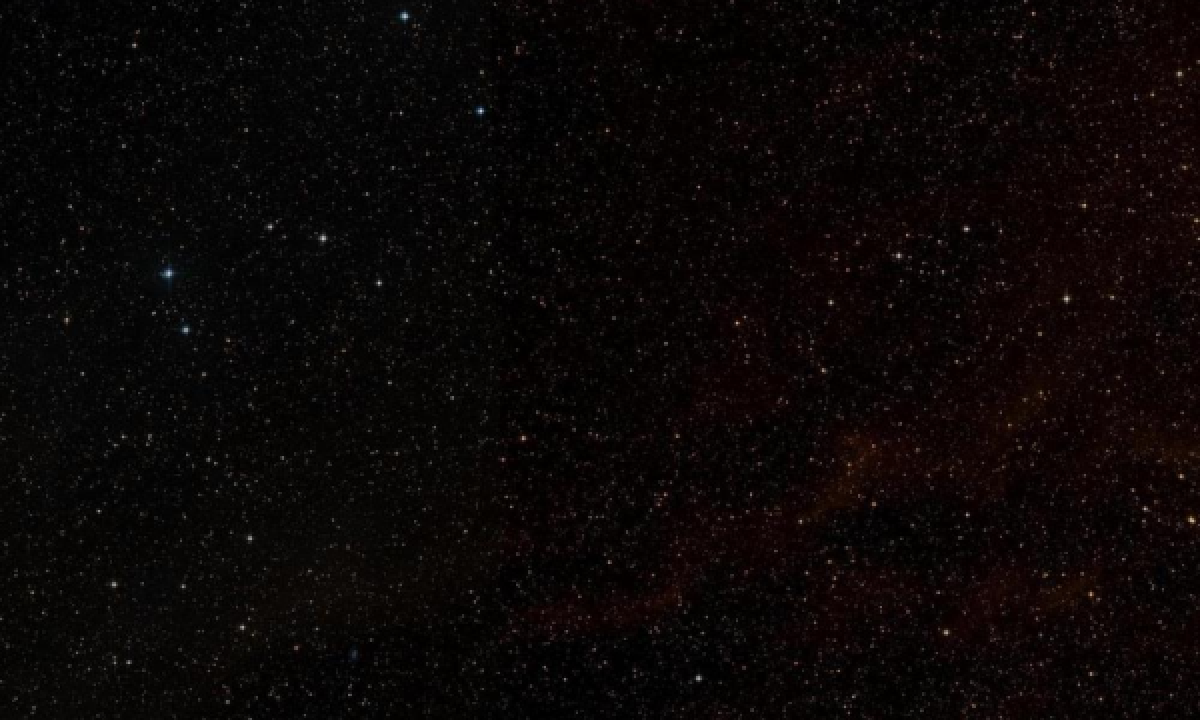 R/B-band color composite image from the Second Digitized Sky Survey (DSS2), measuring 150 arcminutes across.