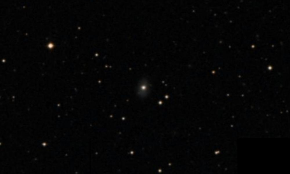 From South El Monte , Markarian 697 is visible in the dawn sky, rising at 00:32 (PST) and reaching an altitude of 61° above the eastern horizon before fading from view as dawn breaks at around 05:51.