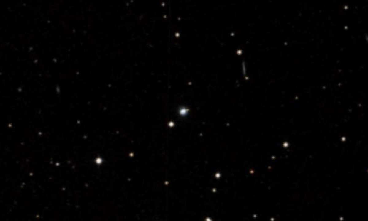 From South El Monte , Markarian 879 is visible in the dawn sky, rising at 00:00 (PST) and reaching an altitude of 60° above the eastern horizon before fading from view as dawn breaks at around 05:51.