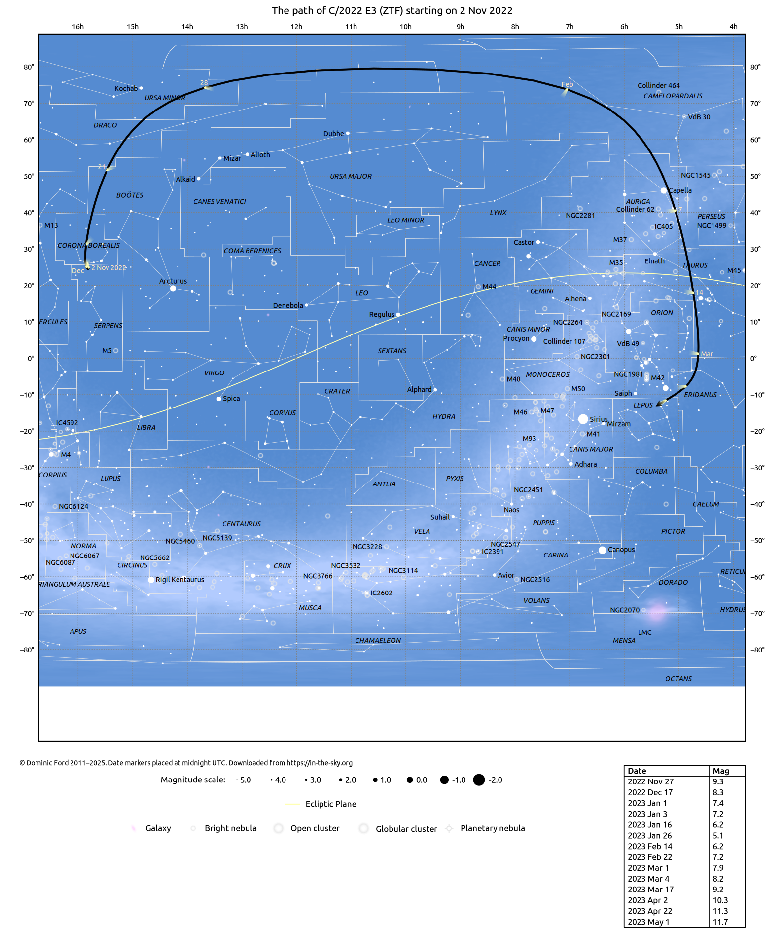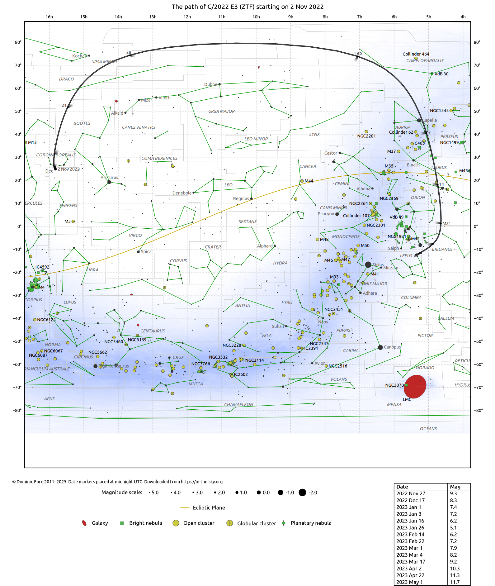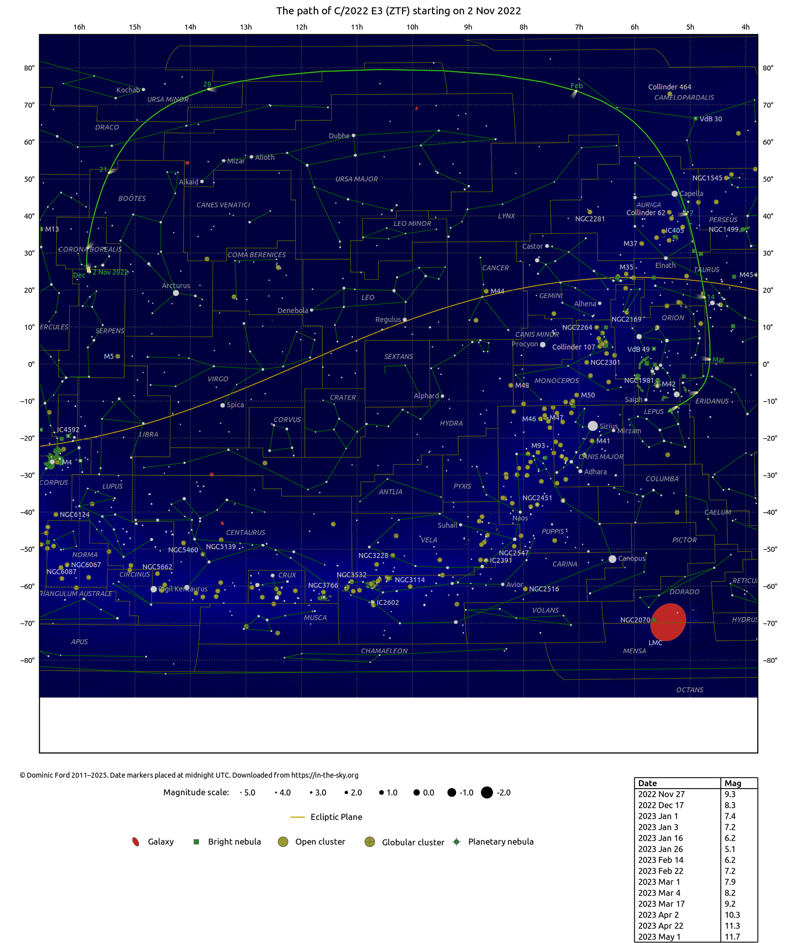 Printable finder charts for C/2022 E3 (ZTF)